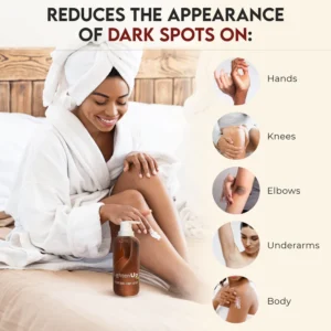 The moisturizing body lotion is formulated to lighten dark spots and even out skin tones with a Brightening ingredient. It restores the skin with a glow, promoting a new even-toned appearance while hydrating and moisturizing.